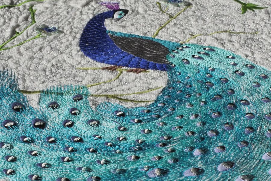 Often referred to as “All Over,” this embroidery technique relates to the idea of full pattern coverage. The design is created using filled areas, executed with running stitches.