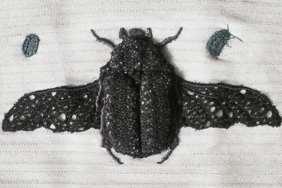 The appliqué technique can be enhanced through the integration of foam elements, accentuating volume and shape. The embroidered piece then becomes a creative object in its own right.